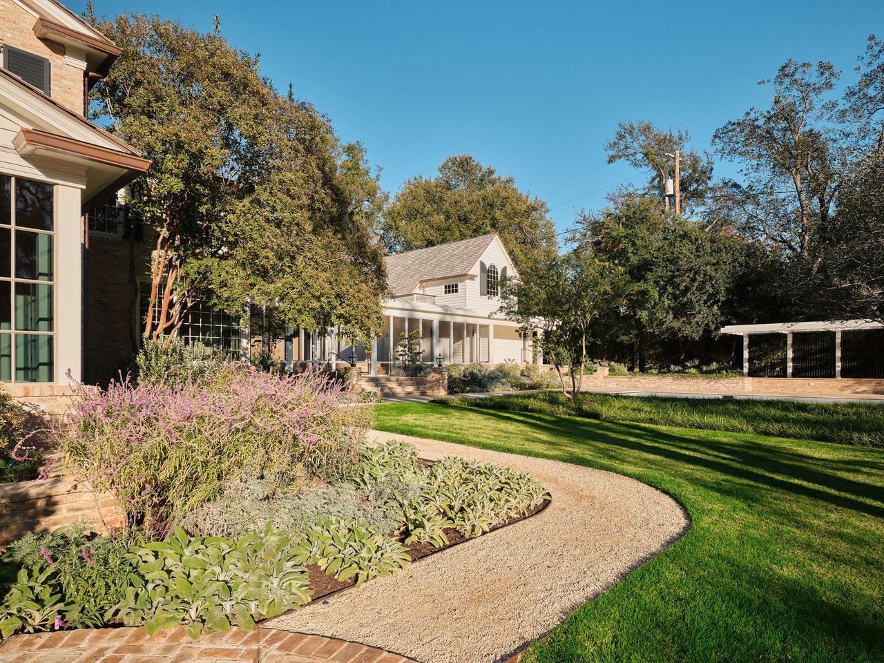 Re-envisioned by award-winning architecture firm Cuppett Kilpatrick – known for its appreciation for classical and heritage elements – the home’s design reflects the gracious nature of the surrounding community while offering everything a modern homeowner could ask for. Presiding over the expertly landscaped lot, the primary residence is constructed of Georgia-style masonry, creating a stately, yet welcoming facade. The sprawling grounds feature a lush landscape worthy of a country estate, including a cutting garden, fairy garden and plenty of lawn space on which to entertain and play. A screened breezeway offers protected outdoor living space overlooking the shimmering pool.